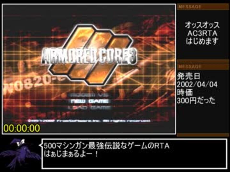 アーマード・コア3RTA 1時間24分24秒 Part1/4 [ゲーム] アーマード・コア3のRTAの動画になります。チャートはこちら(最新版) https://note.com/hoksonck...